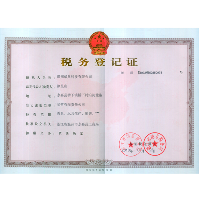 榮譽名稱:稅務登記證